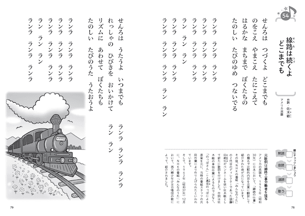 本書の使い方は、黙読→音読→速読→歌う の4ステップ。